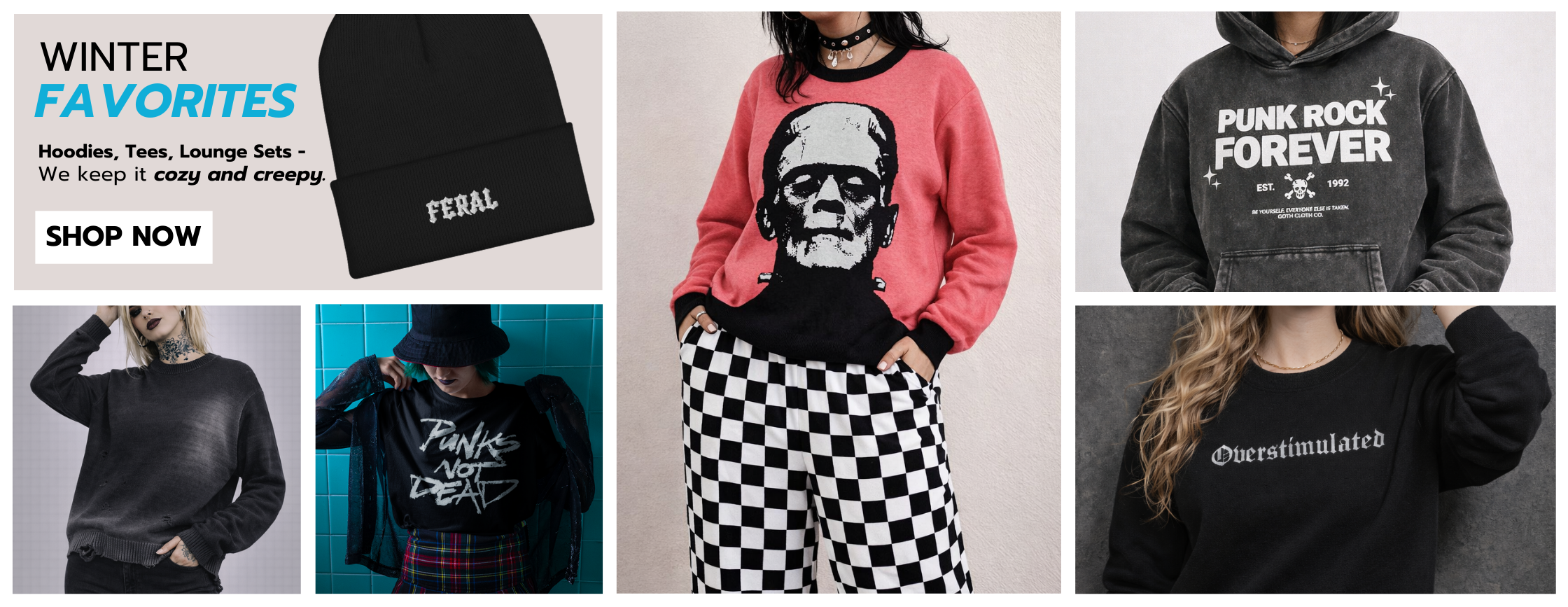 Goth Cloth Co. is more than just a business to us, it’s an identity. Specializing in fashion for the alt in all of us, we prioritize three things: lasting quality, affordable pricing, and size inclusivity. We believe that every body deserves to feel like their most badass self.
